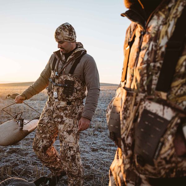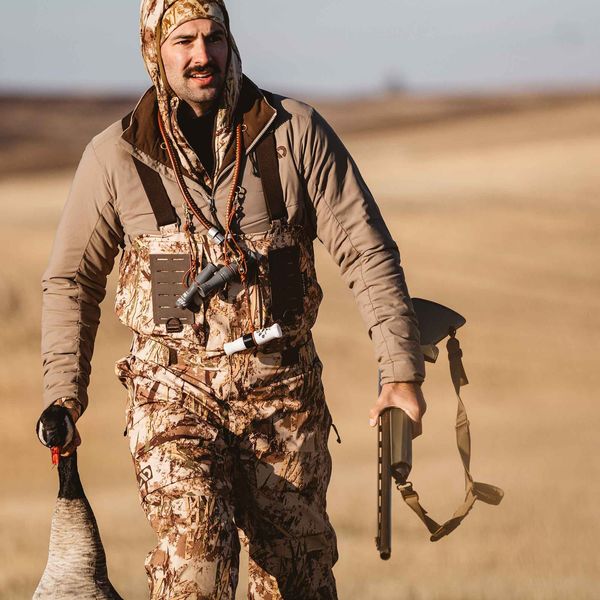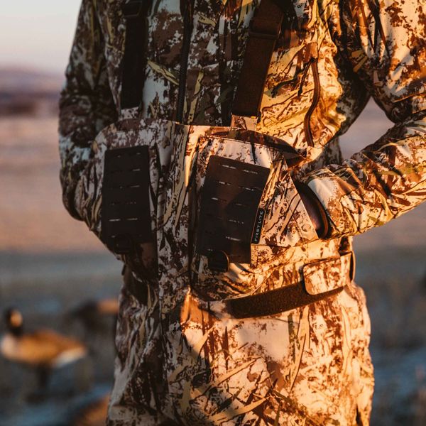 Durable 4.5L waterproof breathable body fabric charged with a 37.5 backer for improved heat and moisture managementHip length leg zips for easy on/off at the truckKnee-high magnetic lower leg closures are completely impervious to mud exposureBody-mapped O-Therm Aerogel foam through the seat and back of the legs creates a barrier to heat loss when lying in muddy fieldsRemovable knee padsMagnetic high-hand pocketsZip-secure chest pocketsChest molle platforms for accessories like the FHF 6 shot-shell holder