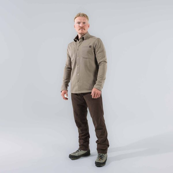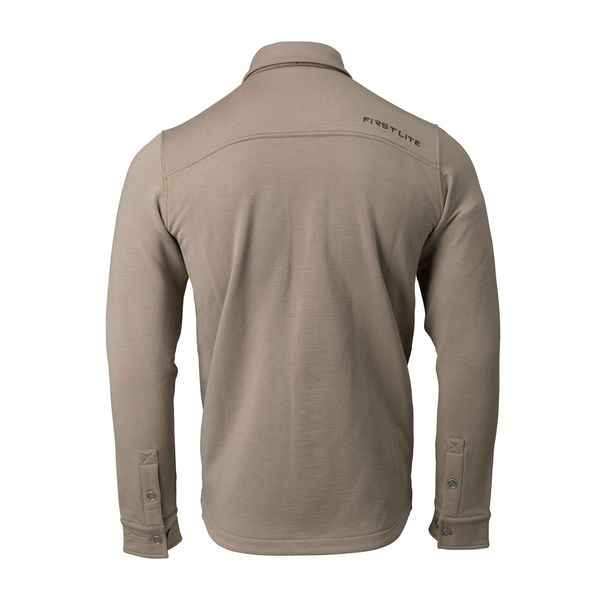 Button down center front placketHidden button down collarSnap secure chest pocketsButton cuffs