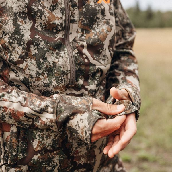 Integrated face-maskVirtually undetectable when not in useEasily deployed if desired for additional face concealmentVirtually undetectable when not in useEasily deployed if desired for additional face concealmentHoody-style kangaroo pocket with premium zip closure to safely store accessories or keep hands warm without bulk glovesIntegrated, thumb loop in cuffs to accommodate layeringLarge chest pocket with zip closureDWR treated faceHeiQ Pure, odor control technologyAntimicrobial properties built in to protect the product from odor-causing bacteria. This product does not protect users or others against human pathogens including bacteria, viruses, germs or other disease organisms.