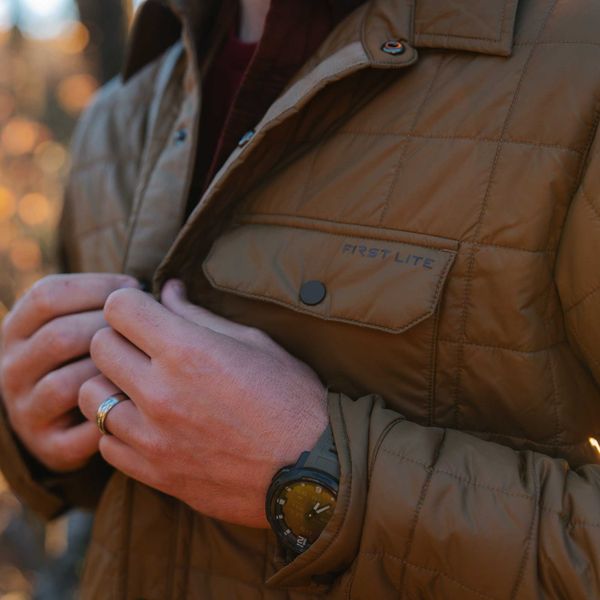 Lightweight, packable, wind-resistant body fabric40gsm PrimaLoft Gold Insulation is warm even when wetSnap front design2 secure chest pockets