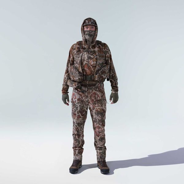 4-way stretch polyester body fabric is durable and quiet, featuring a no-sheen matte finish and DWR treatment.Right and left chest MOLLE platforms for FHF accessories like the3 Round Shot Shell Holder,Nav Pouch, orRangefinder Pouch.Lightweight foam back panel features molded ventilation channels and adjustable load lifter shoulder straps.Dual foam call pouches designed to keep all styles of calls and accessories secure, organized, and easily accessible.Modular box call pouch with internal compression pillow design mitigates unwanted squawks, adjusts to different lengths, and can attach to either side of the vest or removed completely when not in use.Large, expandable game bag features two decoy stake pockets and fully separates for easy loading/unloading of gear and birds.Versatile zippered backpack pouch with hydration bladder compatibility. Backside of backpack features a small snap secured pouch containing a deployable blaze orange panel for safety when hiking out of the field.Dual-density foam seat cinches tight to your back when on the move and quickly deploys to keep you comfortable on long sits.Seat height is fully adjustable and can be removed for hunts out of a tent blind or turkey lounger.