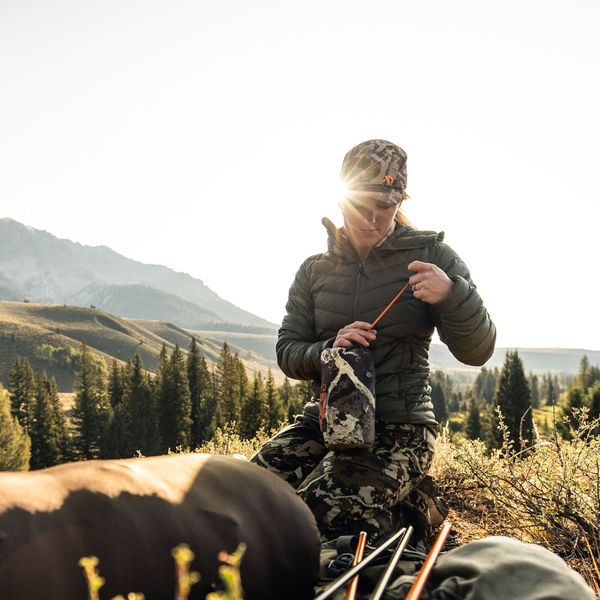 True to Size: Purchase your normal size37.5 DownTek insulation fights off wetting of down clusters while also regulating body heat and moisture inside the jacketAdvanced downproof, nylon shell repels snow/rain and blocks windCenter-front Vislon #8482 zipper resists snagging and provides easy operation with gloved handsArticulated fit for enhanced range-of-motionInnovative, reach-up arm design utilizes underarm baffling to prevent the jacket from riding up when arms are raisedDrop-tail hem provides added coverage to prevent drafts when glassingSuperlight, single-pull adjustable Turret HoodTwo hand pocketsTwo interior stash pockets