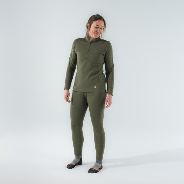 18.5 micron, superfine merino woolInterlock knit for high loft insulation and moisture managementFull lengthLay-flat waistband with brushed jacquard waistband inside for next-to-skin softnessArticulated fit for maximum comfort and supportFlatlock seams for next-to-skin comfortMachine wash, line dry