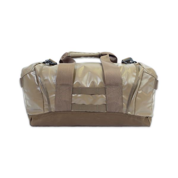 40L capacityRugged double-sided TPU coated ripstop constructionBallistic grade nylon bottom for extreme durability Top lid opens as a durable in-field changing padInternal side wall of duffle includes mesh storage pockets, oriented to be fully accessible while changing on the Changing PadTwo-sided grab handle, single top handle, and removable shoulder strapMolle webbing on sides of all duffles for lashing additional gear to exterior bag (using our Accessory Straps)Dimensions (LxWxH): 21"x 15"x10" Featured in Dry Earth