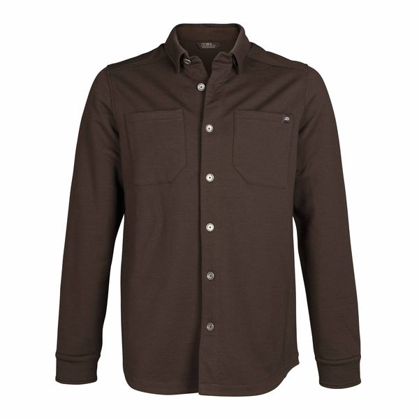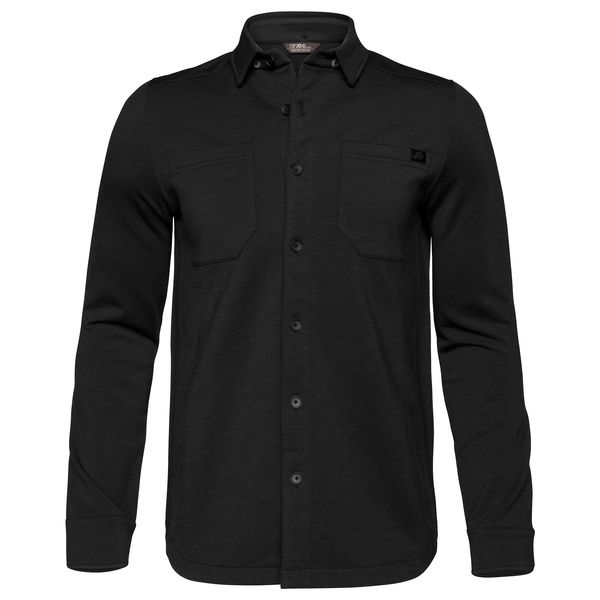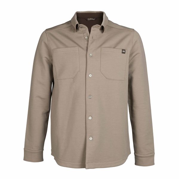 Button down center front placketHidden button down collarSnap secure chest pocketsButton cuffs