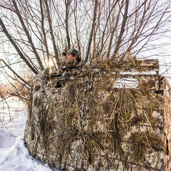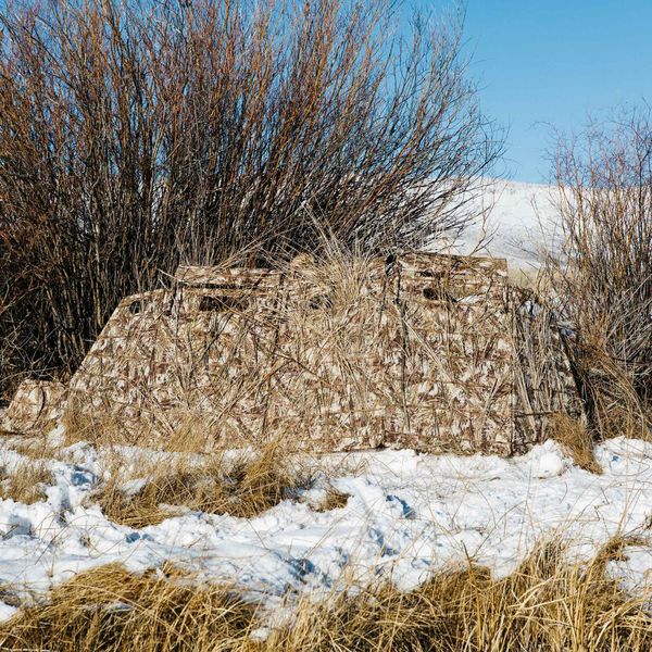 Durable constructionAluminium frameAdjustable width to close gap when you need extra concealmentWindow viewing ports on all panelsConceals up to 4 hunters per set of panelsSize Flat: 130"L Top – 160"L Bottom x 50.5"HSize (folded): 33"L x 4.5"W x 50.5"HSize (3 Individual Front Panels): 33"L x 50.5"HSize (2 Individual Side Panels): 16 – 31"L x 45 – 49.5"HSize (3 Front Panels Combined): 99"L x 50.5"HWeight: 16.5 lbs [19 lbs including (2) support poles and (5) stakes5 stakes: 10"L and .25" in diameter