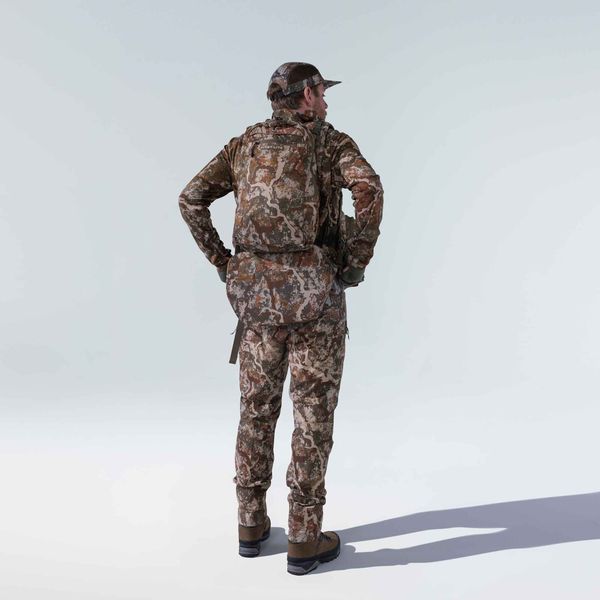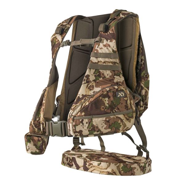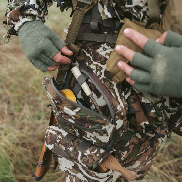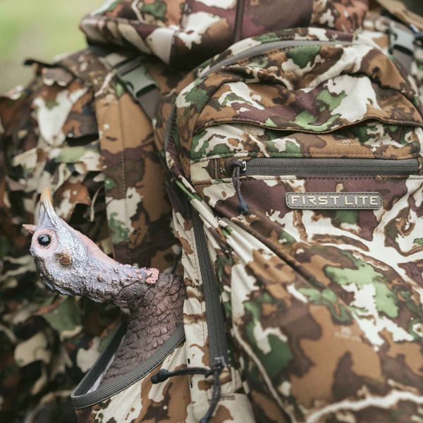 4-way stretch polyester body fabric is durable and quiet, featuring a no-sheen matte finish and DWR treatment.Right and left chest MOLLE platforms for FHF accessories like the3 Round Shot Shell Holder,Nav Pouch, orRangefinder Pouch.Lightweight foam back panel features molded ventilation channels and adjustable load lifter shoulder straps.Dual foam call pouches designed to keep all styles of calls and accessories secure, organized, and easily accessible.Modular box call pouch with internal compression pillow design mitigates unwanted squawks, adjusts to different lengths, and can attach to either side of the vest or removed completely when not in use.Large, expandable game bag features two decoy stake pockets and fully separates for easy loading/unloading of gear and birds.Versatile zippered backpack pouch with hydration bladder compatibility. Backside of backpack features a small snap secured pouch containing a deployable blaze orange panel for safety when hiking out of the field.Dual-density foam seat cinches tight to your back when on the move and quickly deploys to keep you comfortable on long sits.Seat height is fully adjustable and can be removed for hunts out of a tent blind or turkey lounger.